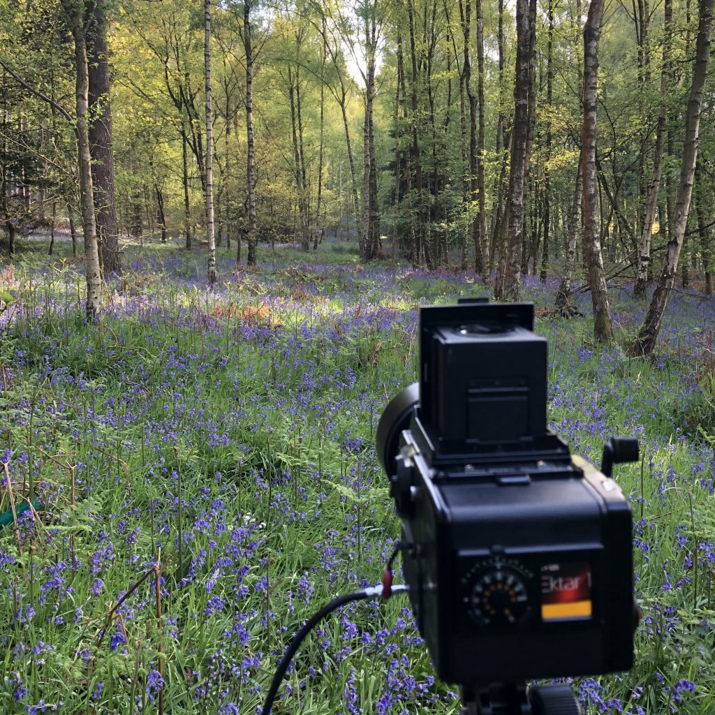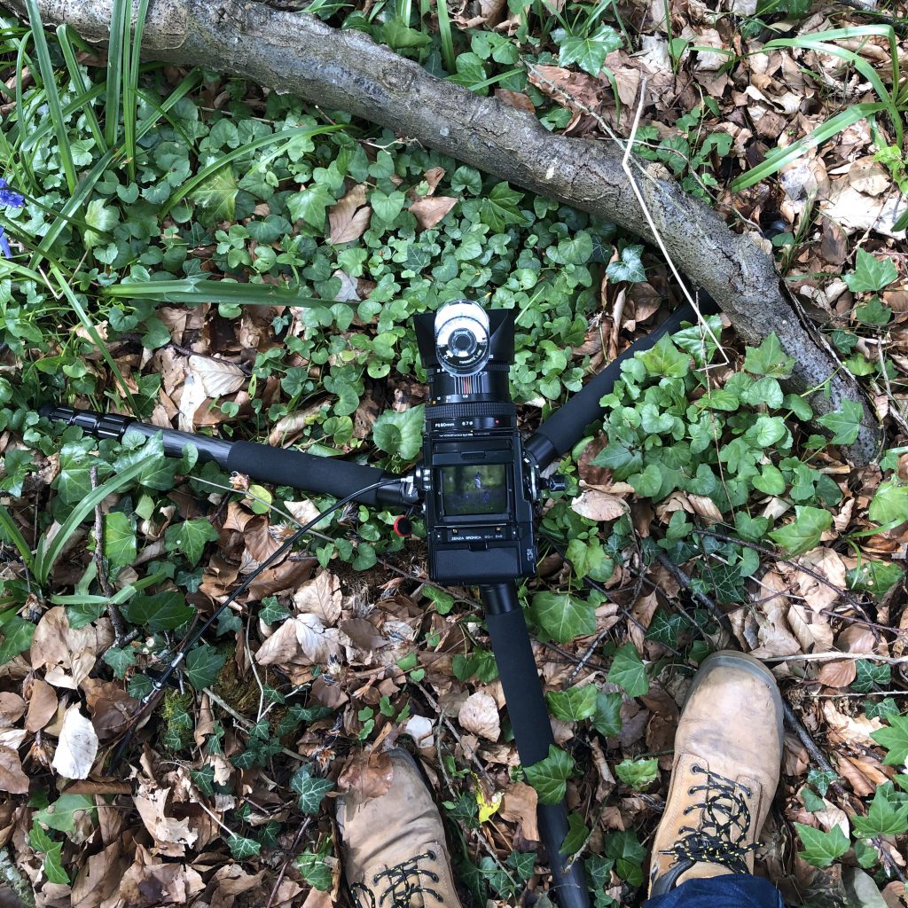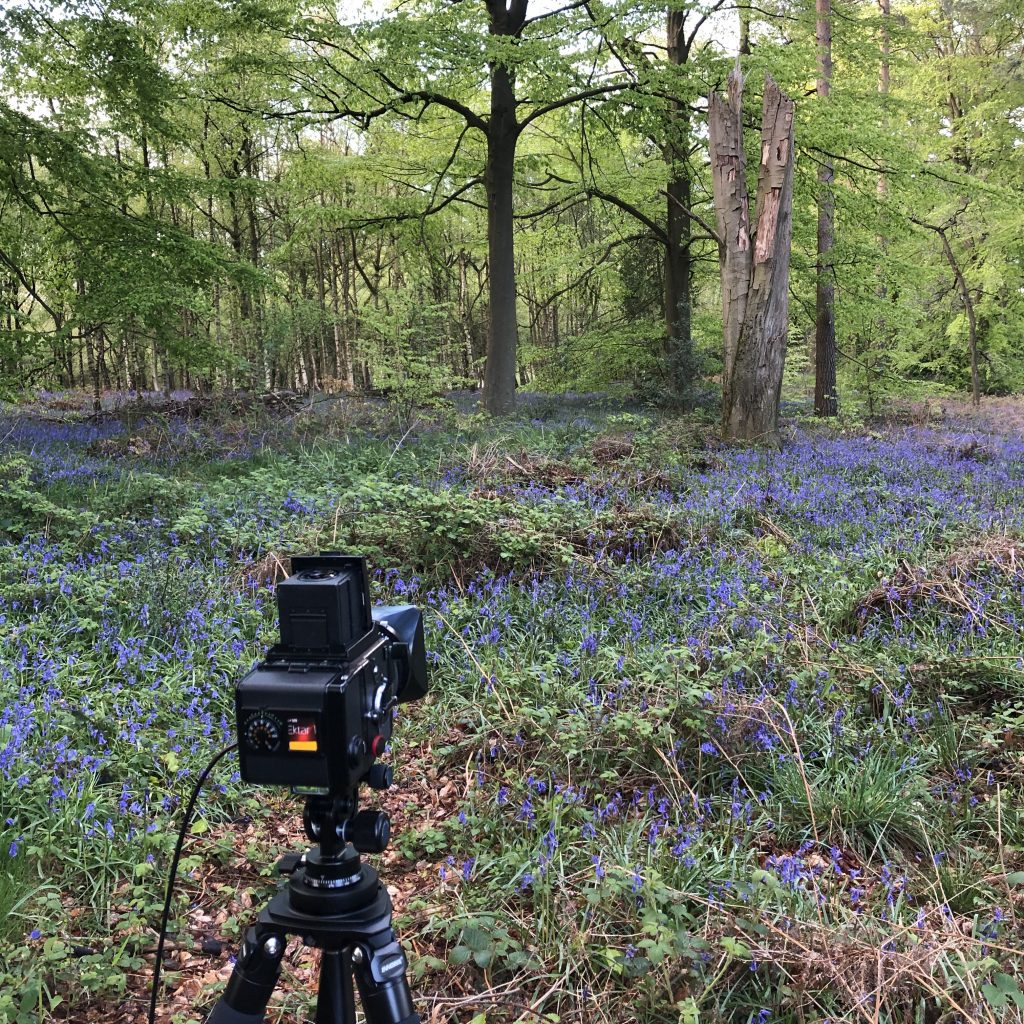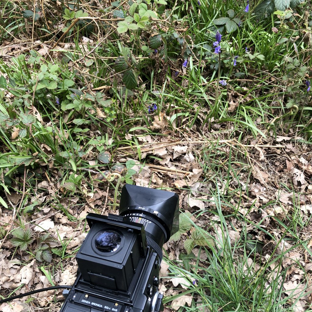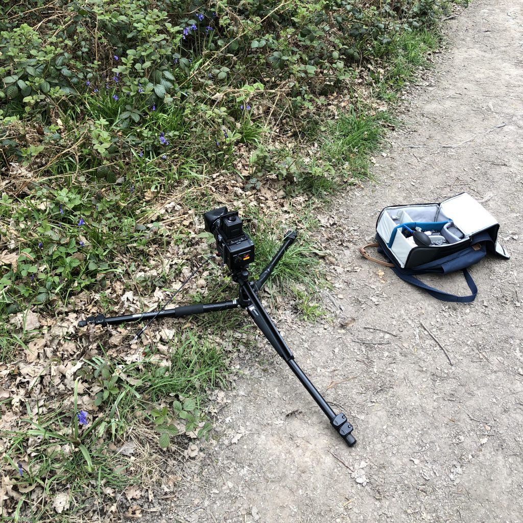 Here are a few images showing my set up for these photographs. Generally I was trying to get photographs which didn’t include paths, but protected the spring flowers. Some of the photos were taken straight from the pathways and some were taken by following tracks made by others before me. I managed to avoid trampling the bluebells.